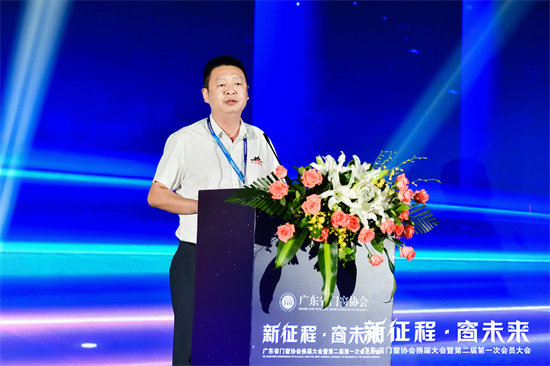 郝会长在致辞中对协会四年来所做的工作和取得的成绩表示肯定,并对新当选的曾奎会长以及第二届理事会、监事会领导班子表示最热烈的祝贺!郝会长提到,虽然门窗在建筑中体量不大,但技术含量高,对节能起着至关重要的作用!希望协会积极发挥引领作用,在门窗产业转型升级,门窗节能知识的普及中发挥重要作用,引领我国门窗行业健康发展!同时,郝会长表示中国建筑金属结构协会将携手广东省门窗协会,助推行业转型升级,向工业4.0时代迈进,为“双碳目标”的实现贡献力量!