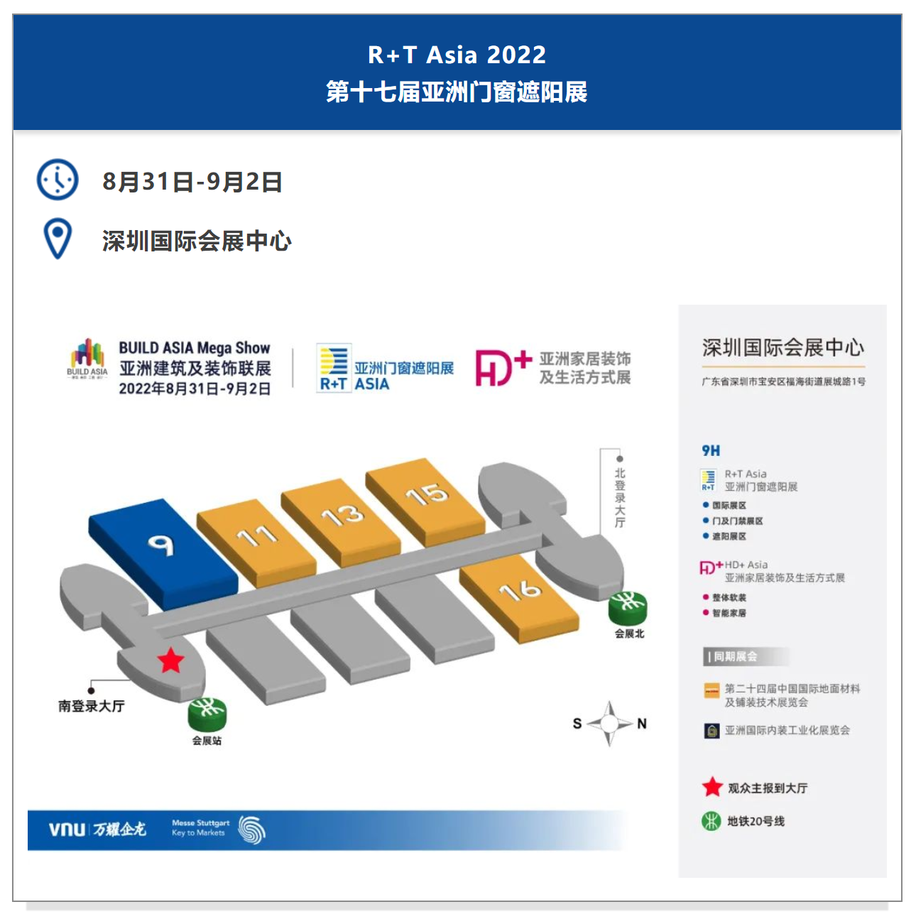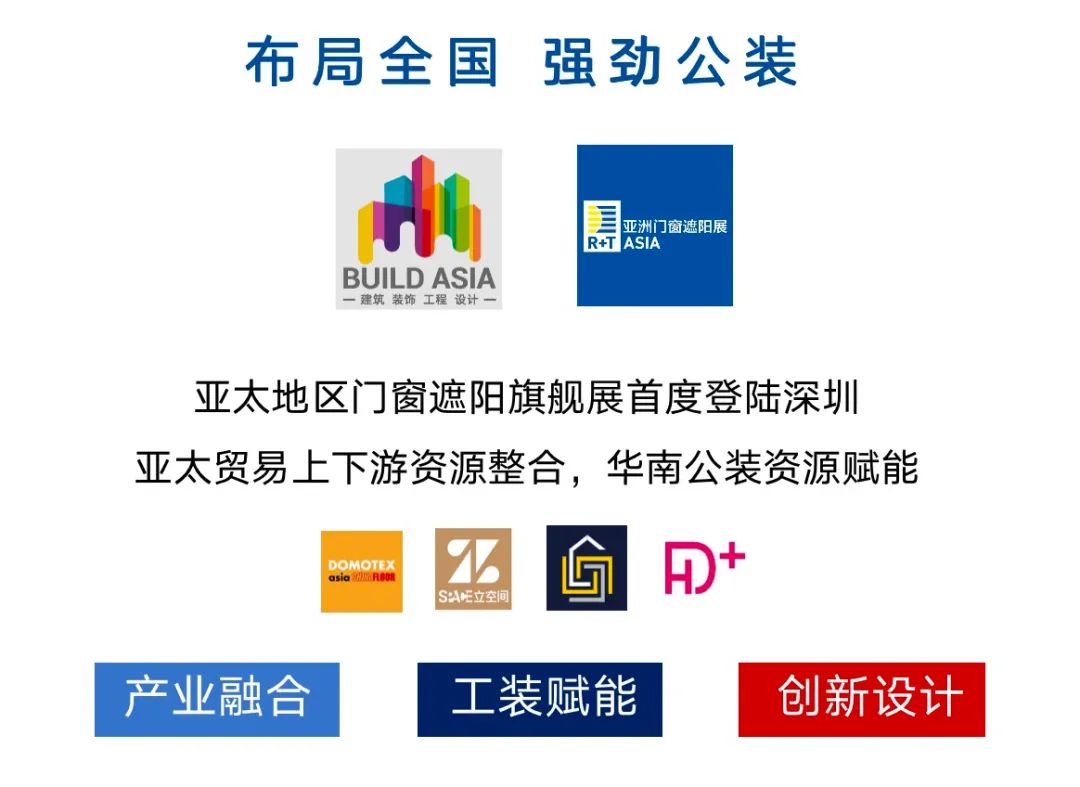 软硬结合,打造跨界服务平台 作为全球制造业重镇,华南在集成家居、软装设计、家具、门窗等产业都极具竞争力。2022R+T Asia将充分发挥地缘优势,广泛邀请华南地区知名企业入驻参展。在继续夯实遮阳面料、配件及驱动、机电机械、门及门禁等传统板块的基础上,在建筑外遮阳、户外遮阳、智能家居等领域进行多维度拓展。 同时,在追逐建装一体化的潮流与风口中,市场渠道在逐步走向多元化。R+T Asia将与BUILD ASIA Mega Show跨界联动多展资源,全面整合硬装、软装、智装产业链,布局“工程、设计、应用、跨界”板块,帮助企业探索跨品类产品的生存之道,赋能门窗遮阳企业开辟新赛道。 广东省拥有全国最多的百强地产企业、众多的建筑装饰行业上市公司以及家装设计公司,建筑、工程、设计等资源优势卓然;在工业4.0的大背景下,装配式技术革新持续加剧,这是新工法、新技术、新部品、新材料在工程市场发起的成本、效率、体验之战。 2022 R+T Asia将联合IPD亚洲国际内装工业化展览会、IPD HOME中国品质居住概念展、ITED 内装工业化大会等工装圈层,广邀地产商、工装公司、集成商、制造商,助力企业共拓工程渠道。 深圳是中国第一个被联合国教科文组织赋予“设计之都”称号的城市,是全国设计师最为活跃的区域之一,这与 R+T Asia多年耕耘设计师群体的战略不谋而和,R+T Asia也将依托cadex建筑纪元及Saloni米兰家具展在多年的积淀,结合华南优质设计资源,以设计驱动产业创新,为呈现行业趋势与探索发展方向开辟全新视野。 多措并举 助力联通全球 纵观全球,疫情对经济的影响正逐步减弱。国际市场进一步开放,多地国际展会也在近期顺利召开,国际贸易加速恢复。近年来,粤港澳大湾区在带动我国与东盟地区跨境贸易上发挥了桥梁作用。深圳也成为促进大湾区与东盟双向贸易与投资的理想平台。 国际市场一直以来都是R+T Asia展商关注的重点。虽然旅行禁令限制了国际买家的准入,但布局全国的进出口贸易商仍然发挥重要的贸易作用。同时,粤港澳大湾区彰显出商贸交流的活力与韧性,为促进全球贸易畅通,推动国际投资合作注入了新的动力。自2019年R+T Asia陆续推出R+T ASIA CONNECT全球贸易通、云逛展、云配对、云探厂等一系列服务,贯穿全年并不断优化升级,目前已成功举办上百余场一对一商贸配对会,在链接全球贸易方面获得展商高度认可。2022年,我们将持续通过丰富多样的数字化线上活动,大力推进进出口贸易商专项邀约计划,持续挖掘全球买家资源,促进展商与海外买家持续互动,有效达成商贸合作。 作为门窗遮阳行业首个重启的大型线下展会 R+T Asia 必将与国内外展商及观众携手并进 在保持亚洲门窗遮阳舰展优势的同时 充分利用深圳地区公装、设计等行业优势 聚合海内外优质商贸资源 在挑战中将逆境转为动力 为行业赋予更多价值,带来更多商机 2022年8月31日-9月2日 深圳国际会展中心 R+T Asia亚洲门窗遮阳展 期待与诸位 共同打造引领全球门窗遮阳行业的又一届国际盛会! R+T Asia 2022 观众预登记已开启