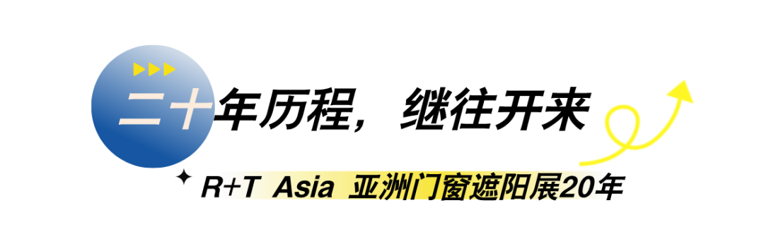 亚太门窗遮阳旗舰展 2025年5月26-28日 上海虹桥·国家会展中心 第二十届R+T Asia亚洲门窗遮阳展 2005年,R+T Asia亚洲门窗遮阳展正式进入中国! 2025年,R+T Asia亚洲门窗遮阳展20周年,已全面布局亚太及全球资源! 在过去的20年中,我们通过不懈的努力与持续的创新,取得了显著的成就。值此之际,跟随我们的步伐,共同回顾那些关键性的时刻! 正是这些里程碑塑造了我们今日的成功,并为未来的发展奠定了坚实的基础,这20年间,我们与众多中国门窗遮阳企业一起,见证了中国门窗遮阳行业的发展,在未来,我们也会继续帮助中国优秀制造企业走出中国,继续将“链接世界,共享未来”为己任,开启门窗遮阳行业的下一个周期! 链接全球,共享未来 20年全球化资源积累,持续挖掘国际资源 9月10日,从海关总署获悉,今年前8个月,我国货物贸易进出口总值28.58万亿元人民币,同比增长6%,我国外贸继续保持增长。前8个月我国有进出口实绩的外贸经营主体达到63万家,同比增加8.8%。在进出口保持持续增长的当下,出海是企业突破增长的必经之路—— “不出海,就出局!” 2024年R+T Asia亚洲门窗遮阳展吸引来自海外111个国家与地区的14,152名专业买家及观众,较去年增长35%,超越疫情前水平,印证了R+T Asia亚洲门窗遮阳展是全球门窗遮阳行业不可或缺的重要商贸平台。 2025年R+T Asia亚洲门窗遮阳展强大的国际化背景将继续吸引着来自全球的客商纷至沓来,通过精准商贸配对、海外特邀买家组团参观等直面沟通的方式,同时通过海外合作媒体为展商带来更多曝光以及高质量外贸机会。 多元化覆盖 探索内贸发展新路径,寻找市场新触点 第二十届R+T Asia 亚洲门窗遮阳展在20岁生日之际,汇聚全球伙伴,携手BUILD ASIA Mega Show建装一体化全品类联动,打造从建筑到整装,内贸+外贸双驱动模式,整合“建筑、硬装、软装、智装”全品类,集国际、工程、设计、应用四位一体的大型建筑及装饰材料平台,帮助企业打通建装全品类上下游产业链,探索国际化、跨品类产品的生存之道,与门窗遮阳企业共同探索发展新路径! 2025R+T Asia亚洲门窗遮阳展将继续联合中国建筑金属结构协会建筑遮阳分会,持续打造“低碳装饰展区”,展示最新的节能理念和技术解决方案,整合全行业资源,汇聚行业专家,聚焦从开发商、设计院、施工单位、装饰公司到材料商全行业链,共同探讨在产品设计、服务体验、品牌打造等各个环节融入绿色时尚的装饰理念,以及在落实低碳节能装饰实践中的最新技术成果。 二十年的时光,见证了R+T Asia 亚洲门窗遮阳展的成长与辉煌。在这特殊的时刻,我们邀请您一起参加我们的二十周年系列庆祝活动。我们将面向全体征集与R+T Asia亚洲门窗遮阳展二十年共成长的记忆! 参与方式(任选其一): 一、“R+T Asia亚洲门窗遮阳展的时光隧道” 1、 将您所珍藏的“记忆”以图片或者视频的形式发送至邮箱christi.yuan@globusevents.com(标题注明“我记忆中的R+T Asia亚洲门窗遮阳展”) 2、 点击此处添加客服,发送相关图片或视频素材。 “记忆”内容不做限定,可以是当年逛展随手所拍的视频、照片,参加展会的参观证、展商证、与客户的合影等,或者是与我们有关的新闻稿件截图,只要是独属于我们的专属记忆都期待您的投稿。 没有照片?没有视频?没关系,文字所传递的情感一样深厚!对于R+T Asia亚洲门窗遮阳展20周年,您是否有什么感想或者祝福,都可以告诉我们! 二、 “对R+T Asia说说心里话” 1、将您的“心里话”编辑文字发送至邮箱christi.yuan@globusevents.com(标题注明“对R+T Asia的心里话”) 2、点击此处添加客服,发送文案。 此次征集内容在后续的宣传推广中将会以专栏形式进行展示,并将会从中选取5位幸运儿,送出独属于R+T Asia亚洲门窗遮阳展二十周年独家定制礼品包! 我们期待与您一同庆祝这非凡的旅程,共同见证门窗遮阳行业的辉煌成就,并携手迈进更加辉煌的未来。系列活动即将陆续上线,敬请关注后续详细活动信息,我们希望通过这些活动,不仅能回顾过去二十年来的点点滴滴,更能激发对未来无限可能的憧憬。期待在R+T Asia 亚洲门窗遮阳展二十周年的现场看到您的身影,邀您共同开启新的篇章! 2025再聚,共庆R+T Asia20周年盛典 2025年也即将迎来R+T Asia亚洲门窗遮阳的20周年庆典 我们诚挚邀请所有合作伙伴与行业朋友 与我们一起共赴廿年之约, 共同见证遮阳科技的又一次飞跃! 2025年5月26-28日 上海虹桥·国家会展中心 不见不散! ✦ • ✦ 「不是每个遮阳展 都叫R+T Asia」 R+T Asia亚洲门窗遮阳展 HD+ Asia亚洲家居装饰及生活方式展 展位预定火热进行中