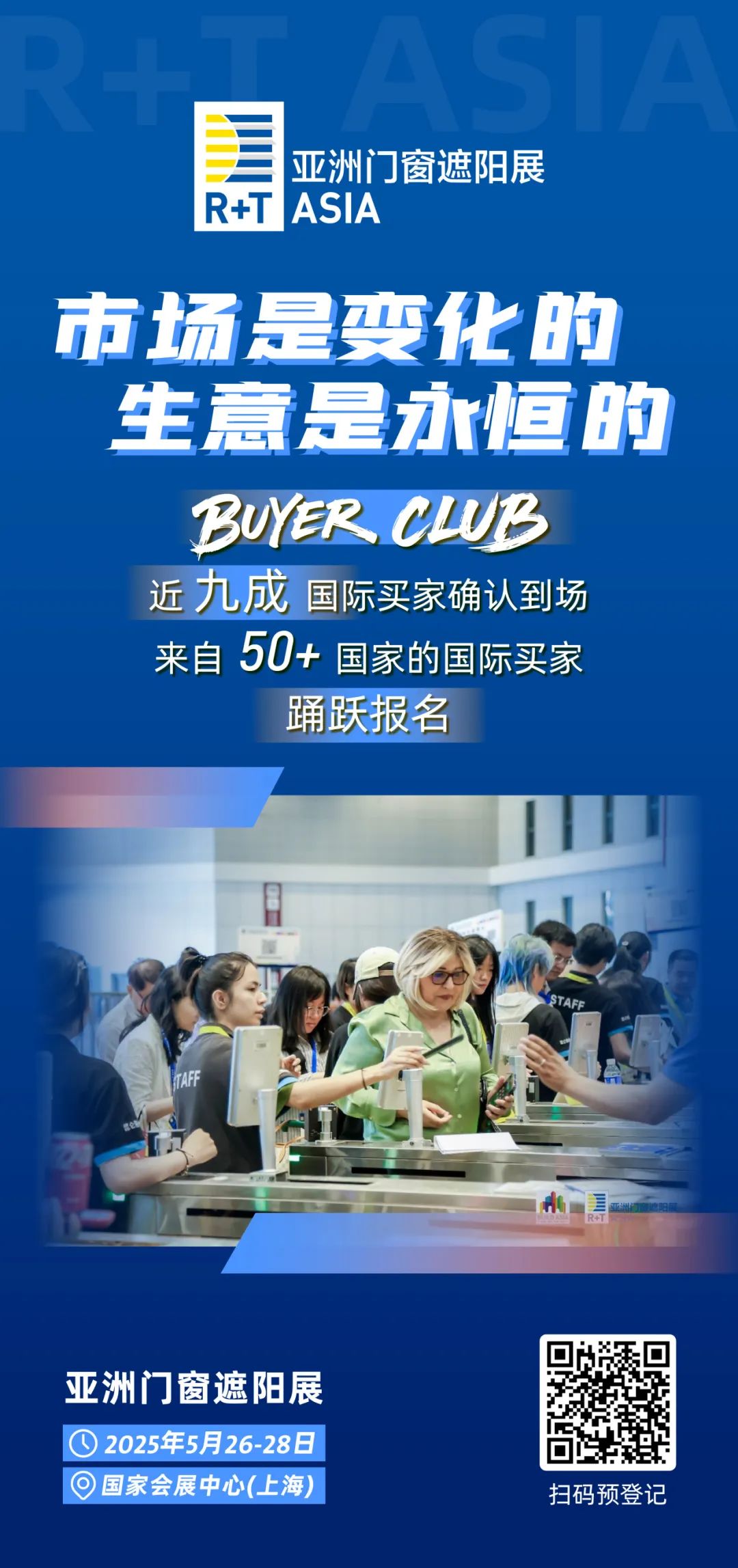 R+T Asia作为专业的门窗遮阳贸易平台,深耕全球市场多年,始终坚持多样化的全球布局以应对难测的环境变化,支持企业品牌在稳固原有市场的同时开拓新兴市场。5月26-28日,在上海虹桥·国家会展中心,我们将再次为全球门窗遮阳品牌和买家提供高效的贸易通道,预计超14,000国际买家, 10+海外展团、定向邀约国际买家团,激发更多现场贸易机会。