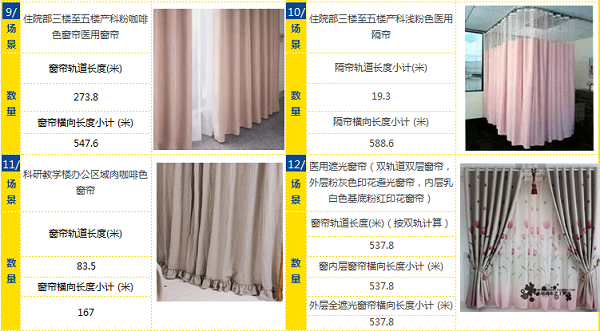 窗帘隔帘及导轨采购安装是医院新建项目开办的一项重要内容,包括各式窗帘、纱窗、隔帘和窗帘隔帘导轨、输液导轨等,品种样式繁多,使用功能各异,还要考虑满足消防、安全、环保、院感控制和空间环境色彩搭配等多方面的特殊需求。