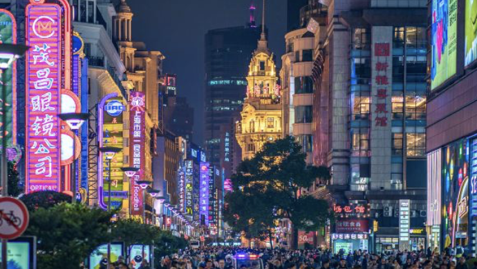 南京路和淮海路是上海最繁华的街区,素有“中华商业第一街”之誉,东起外滩,西至静安寺与延安西路交汇,全长5.5公里,两侧商厦鳞次栉比,云集着约600多家商店。西藏路以东称南京东路(原称花园弄,1865年改名为南京路),以西称南京西路(从前称静安寺路)。