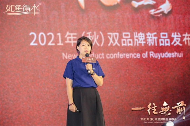 在如鱼得水墙布的新品发布环节,墙布研发负责人李思思女士登场并为大家带来了溢彩墙布爆品第二期介绍。李思思女士讲解道,墨绿色和铁锈色是2021年的流行色,Y06版本的墙布以中国古典色作底,再结合当下的时尚潮流,共推出了43款新品。截至目前,溢彩墙布销量已占据如鱼得水墙布总销量的80%,李思思表示希望对爆品的解读能在帮助经销商打开全新的搭配思路,为客户带来更好的消费体验。