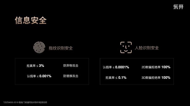本次乐开发布的50 Series至薄3D人脸识别智能锁,能够基于奥比中光3D结构光技术在1m范围内实现无感识别,秒级解锁。50 Series搭载的3D活体检测技术,可有效防御人脸照片及视频等伪装攻击,并在黑夜环境无需补光就能精准识别。