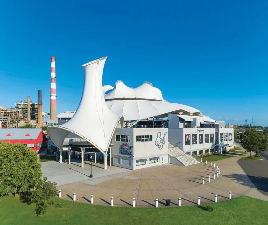 FTL工作室最近完成了康涅狄格州一座闲置棒球场的再利用和改造。“这座体育场建于90年代,我们的第一感觉是建筑形状相对理想”,Goldsmith介绍称,“因此,设计目标应该是尽可能多地保留现有设施结构,同时给它增加一个引人注目的全新外壳。”FTL通过使用全织物覆盖顶棚和特色的入口遮阳檐幕来减少隐含碳排放量。与原先的棒球队门票收入相比,项目的投资回报率增加了十倍。