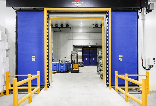 A:从全程不断链和冷库节能的2个角度来说,对工业门产品的合理设计、密封性能都是一种更高的挑战。为了满足冷链过程中对节能保温、高效作业,降低能耗的需求,快联门业提供了高速冷库平移门的方案,这套方案解决了传统2道门(不锈钢电动低速平移门+PVC保温快速门)的痛点,可以做到高速开启、保温、防撞、智能检测等优势。