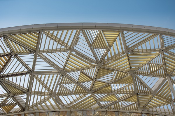 百叶窗支撑在三角形构架上,该设计不仅能支撑柱子顶部,并可以分散它们的荷载。除此之外,遮阳蓬和柱子为周边提供遮罩,为建筑物的节能起到积极作用。