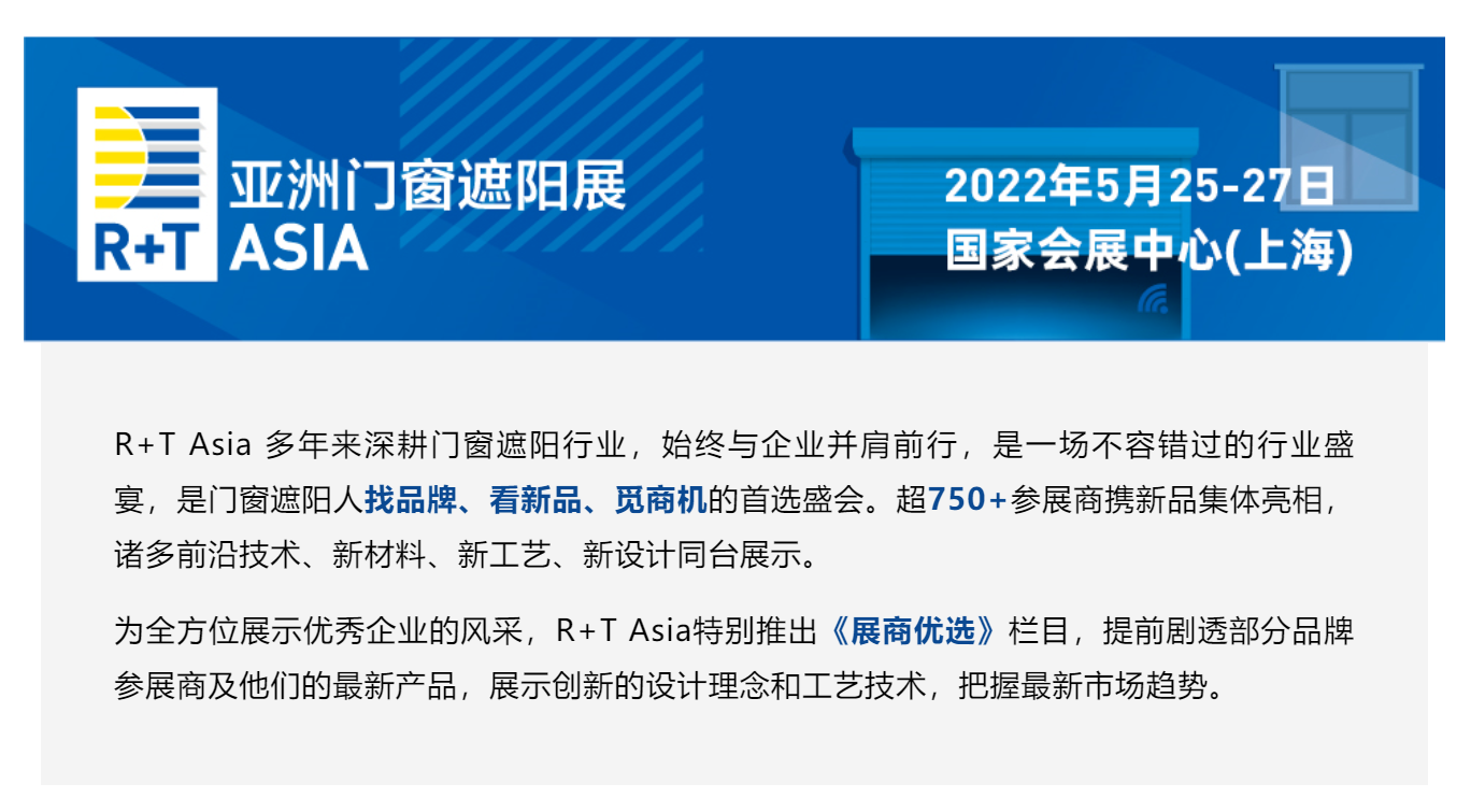 浙江德易遮阳科技股份有限公司 Zhejiang D E Sun-shading Technology Co. Ltd. 浙江德易遮阳科技股份有限公司,前身是成立于2010年的争先涂层。是一家致力于纺织面料、卷帘、罗马帘、软窗帘的涂层生产与研发,并逐步打造成为一个中国领先的从织造到涂层再到成品帘一条龙生产的高科技窗帘制造企业。德易遮阳科技一贯重视技术创新和产品研发。公司投资逾千万元,1000多平方米的先进材料与技术创新中心。公司秉承“质量为先、信誉为重、管理为本、服务为诚”的经营理念,并全面实行质量管理体系及6S企业管理,公司产品通过REACH、Oeko-Tex Standard 100、GREENGUARD绿色卫士、Bluesign、ISO9001等国际认证。 01 2017年,公司在海宁市盐官工业园投资1.5亿元巨资,以中国窗帘专业制造商为定位,专注于高端新型多功能遮阳涂层和多功能装饰涂层的生产制造,逐步打造成一个中国领先的从织造到涂层再到成品帘的一条龙生产的高科技窗帘制造企业。 02 公司拥有技术全面, 经验丰富的一流工作团队和产品研发人员,不惜花巨资引进了5条德国门富士涂层生产线及意大利自动注料系统等国际先进配套设备。构筑精益生产体系,实现涂层生产线的智能化数据可控化,产品品质的稳定性在行业内拥有巨大优势。 03 合作无忧 04 凭借雄厚的研发实力和制造优势以及市场领先的产品,浙江德易遮阳科技股份有限公司在市场上构筑了卓越的竞争优势,为合作伙伴和客户创造了更大的价值,赢得了用户的广泛认可和好评。 涂层窗帘面料 卷帘 roller blinds 罗马帘 roman blinds 软帘 soft curtains 多年来,德易始终秉承“以客户为中心,以奋斗者为本”的核心价值观和“让社会更安全、让生活更智能”的使命。建立了德易的以卓越绩效为框架的持续改进体系,并参照业界最佳实践,持续改进公司的研发、供应链、营销管理等过程业务;引入了环境及职业健康管理体系,保障员工健康,保护环境,生产绿色产品,履行德易遮阳企业的社会责任。 END R+T asia作为国内遮阳企业拓展外贸渠道的首选平台,始终坚持积极布局国际市场,搭建展商及海外买家的需求交流平台。同时依托全球合作网络,开发线上配对产品- R+T Asia Connect,整合云配对,云发布,云逛展等系列线上产品,助力企业海外贸易进程,通过多种线上线下融合模式,为展商和观众带来更多价值与商机。 关于R+T Asia CONNECT 2.0 面对全球疫情的反复,品牌方如何拓展新的海外销售渠道?全新升级R+T Asia CONNECT 2.0版为您带来一对一的服务,实现海外买家采购需求与企业产品的精准对接,实现“不出国门,玩转全球贸易”。 立即咨询,抢先预约! 扫描下方二维码,添加官方微信小助手,为您提供更多专属服务! teresa.wang@vnuexhibitions.com.cn