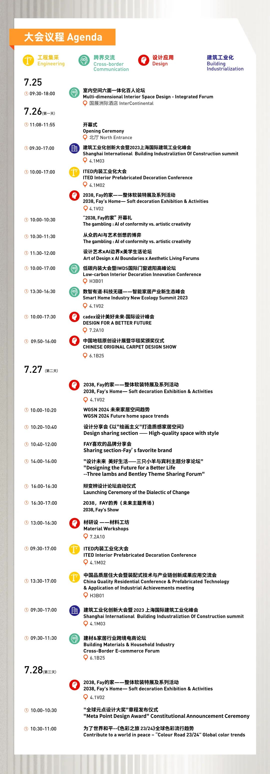 除了现场海量展品,我们更有20+ 重磅论坛活动。覆盖工程集采、跨界交流、设计应用、建筑工业化四大主题。百位重量级大咖嘉宾云集,畅谈建筑装饰行业的发展趋势与技术前瞻,引领行业发展。
