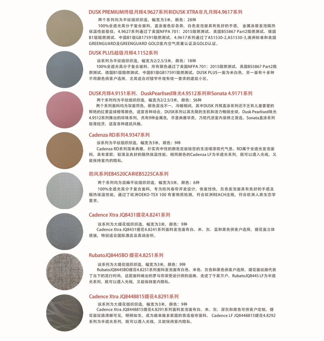 在2024年R+T Asia亚洲门窗遮阳展的现场,温多利携多款面料亮相展会,独居设计的面料墙板吸引了众多客户驻足观看、咨询洽谈,温多利产品研发与制造实力得到了客户们的高度认可。针对于R+T Asia 亚洲门窗遮阳展的现场反馈,温多利也表示了认可,并已确认将继续参与2025 R+T Asia 亚洲门窗遮阳展(2025年5月26-28日,上海虹桥),期待明年的现场温多利可以为我们展示更多优质产品与技术! 关注客户使用每一寸面料的感受 温多利遮阳材料(德州)股份有限公司是一家中外合资企业,依托于新西兰及澳大利亚的资金与技术支持,专业研发、生产高品质阳光面料、遮光面料,集研发、生产、销售与一体,是一家高端遮阳面料专业制造商。 公司自2003年建成投产以来,不断吸收国外先进技术,加大技术和研发投入,坚持开发拥有自主知识产权的新产品,先后开发生产出1%、3%、5%、10%、12%等不同开孔率,不同风格的聚酯纤维阳光面料、玻璃纤维阳光面料、超薄系列阳光面料及多种色彩风格的全遮光面料。 温多利凭借其先进的设备、精湛的技术、严格的管理、优质的服务,赢得了海内外越来越多优质客户的信任与支持,温多利关注客户使用每一寸面料的感受,超长质保五年,更是他们坚守品质的体现,温多利品牌已成为海内外遮阳市场越来越多客户的首选。 匠心制造,专注高端遮阳面料研发 温多利阳光面料具有单向透视功能,有效过滤眩光,获取自然光线,可以抵挡多达99%的紫外线,使您和家人的身体免收紫外线的伤害。拥有良好的隔热性能,减少室内空调的使用率,以达到节能的目的。面料采用超高强工业丝、优质原生环保PVC,采用特殊的织造与后整理工艺,确保面料的开孔均匀度及平整度。 温多利遮光及透光涂层面料为丙烯酸涂层高分子复合面料,遮光效果好,经久耐用。该系列具有防晒、防霉、防静电、抗菌、不吸尘、易清洁等特点,产品不含PVC,符合欧洲人类生态学要求,符合欧洲REACH法规。面料全部通过美国GREENFUARD环境研究院室内空气质量认证及GOLD认证。 如需咨询更多详情与商机 2025再聚,共庆R+T Asia20周年盛典 2025年也即将迎来R+T Asia亚洲门窗遮阳的20周年庆典 我们诚挚邀请所有合作伙伴与行业朋友 与我们一起共赴廿年之约, 共同见证遮阳科技的又一次飞跃! 2025年5月26-28日 上海虹桥·国家会展中心 不见不散! ✦ • ✦ 「不是每个遮阳展 都叫R+T Asia」 R+T Asia亚洲门窗遮阳展 HD+ Asia亚洲家居装饰及生活方式展 展位预定火热进行中